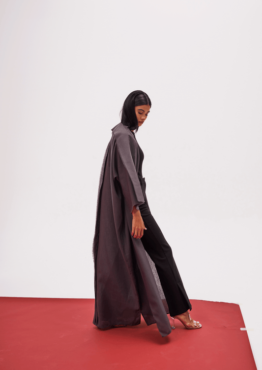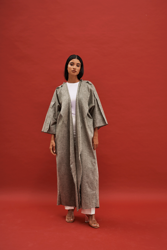 CHARCOAL/BLACK LINEN ABAYA